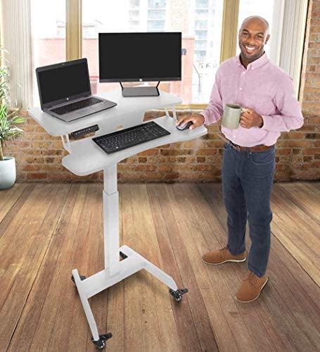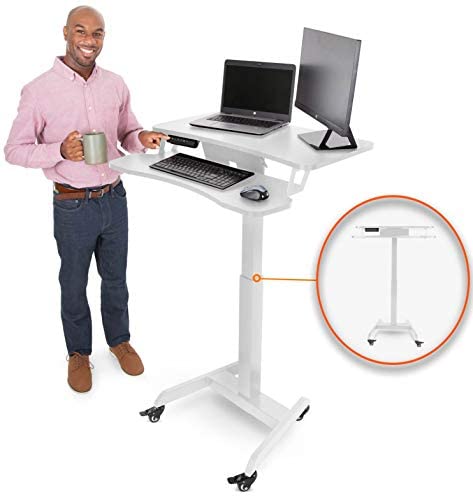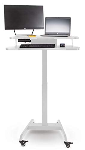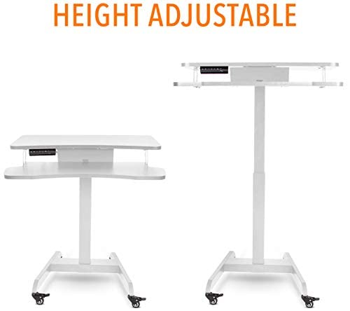 Stand Steady Electric Mobile Podium with Keyboard Tray | Height Adjustable Stand Up Workstation with Locking Wheels | Go…