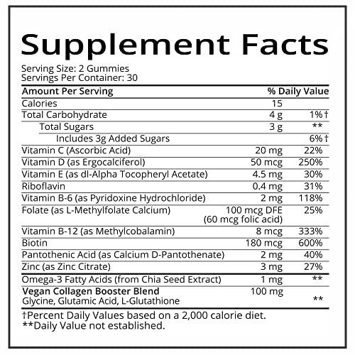 Formulated with Vitamins B-12, C, D-2, E, Glutathione, Vegan Omega-3s, Folate, Vegan Collagen Booster blend.