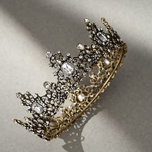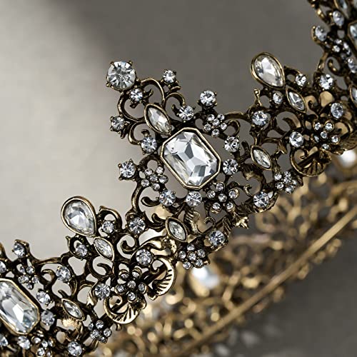 SWEETV Jeweled Baroque Queen Crown for Women – Rhinestone Wedding Tiaras and Crowns, Bronze Costume Hair Accessories for…