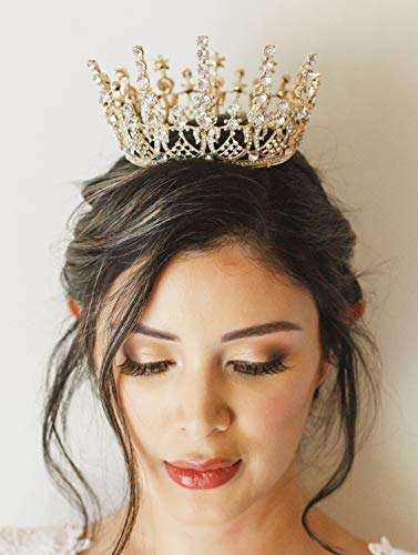 ♕ The gold rhinestone crown is of high quality, close as a full round for a perfect fit. Pin loops under the tiara for extra security. (Bobby Pins Included)