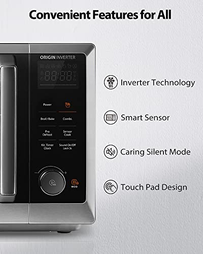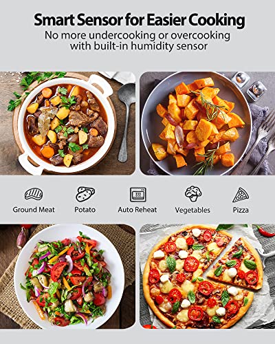 【Inverter Microwave with Smart Sensor】Built-in humidity sensor intelligently adjusts power and cooking time, make sure your food is never undercooked or overcooked. Inverter Microwave technology also provides even cooking, reheating and defrosting with no cold spots, guarantee the maximum tender texture