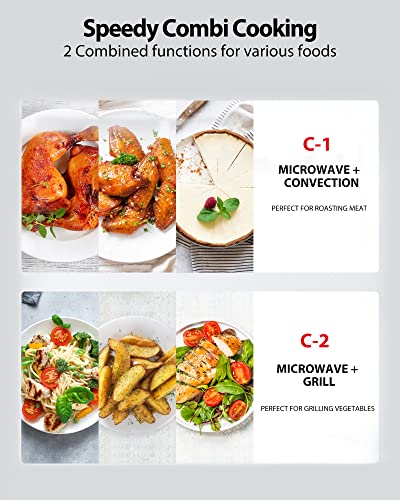 【Speed up Cooking with Combi-Modes】Despite powerful output of 1800W under Convection up to 425°F and 1000W under Grill, Combi-Modes speed up your cooking with combination of Microwave, convection and grill function, while delivering perfect dishes with crispy, browned outsides and tender texture insides.