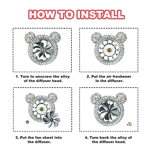 ?[Lovely high-quality design]: Zinc alloy material, cute bear-like appearance, high temperature resistance, corrosion resistance, no discoloration, beautiful appearance, and durable. The package includes: 1*aromatherapy diffuser for car, 2*aromatherapy refill pad(1*aromatherapy refill pad+1*unscented refill pad).