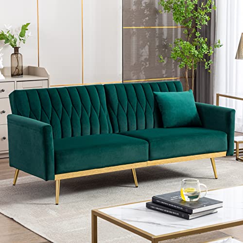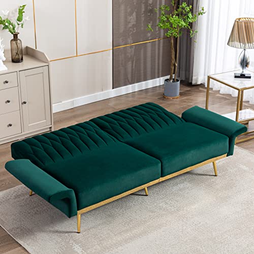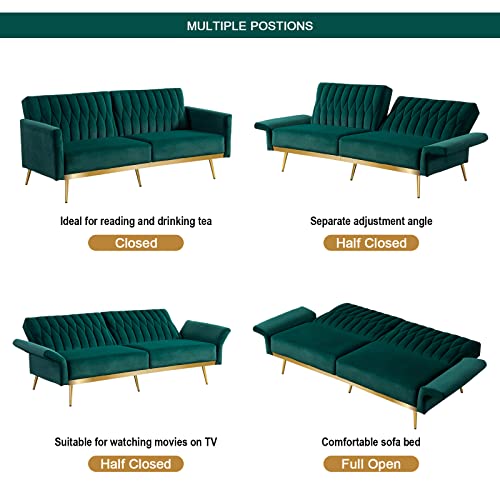 Paddie Velvet Futon Sofa Bed Sleeper Sofa with Adjustable Armrests, Convertible Modern Futon Couch Home Furniture for…