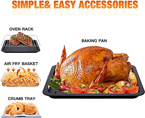 ?【 Multifunctional Toaster Oven 】 WEESTA air fryer toaster oven includes 7 main functions: air fry, toast/bake, roast, broil, defrost, convection broil, and grill. Easy-clean accessories included: air fryer basket, oven rack, baking pan, drip tray. The instruction book and E-recipe help customers start with our machine.
