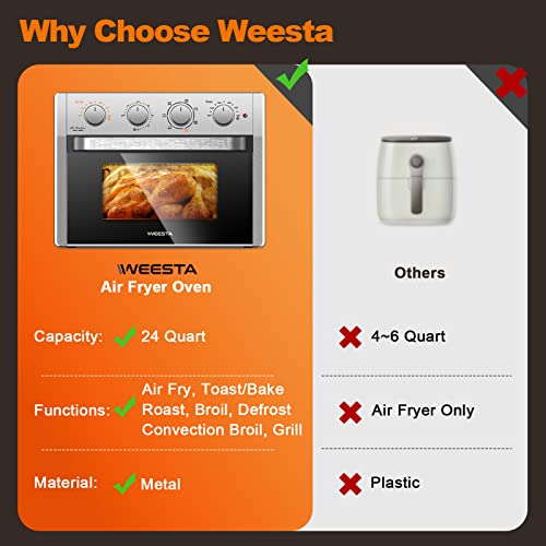 WEESTA Large Air Fryer Toaster Oven, 24 QT, 7-in-1 Convection Oven with Roast, Bake, Broil, 4 Accessories and E-Recipes…