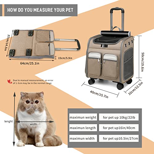 LARGE SIZE DOG CARRIER – This dog rolling carrier is designed to provide maximum comfort for you and your pet while hiking, traveling, taking your pet to the vet or walking in the park. Measures approximately 40 x 32 x 50cm/15.7×12.5×19.6inch(L x W x H). Ideal for two medium-sized cats or one dog, giving them plenty of room.