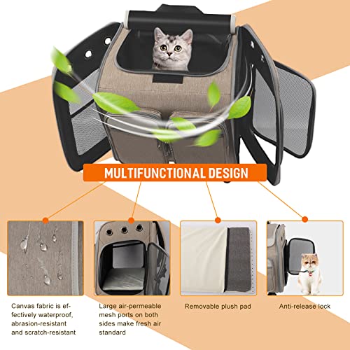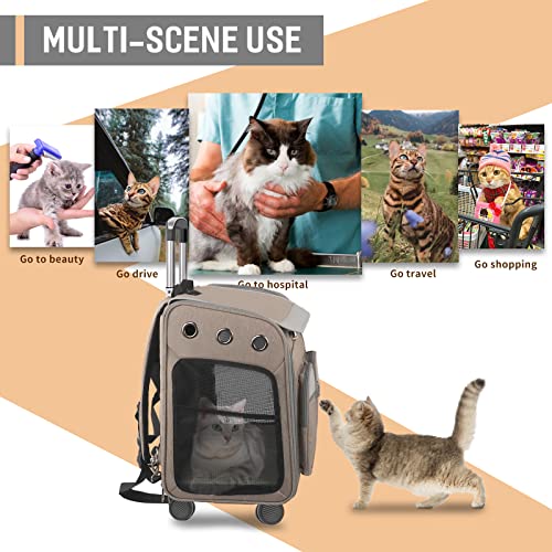 CONVENIENT STORAGE – The cat carrier with wheels can be completely folded into a flat surface without taking up too much space, making it easy to store. Practical side compartments and zippered pockets for keys, snacks, garbage bags, smart phone, etc. High quality non-slip zippers and hardware prevent your cat from running out.