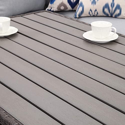 【DURABLE QUALITY】This patio furnitur【DURABLE QUALITY】This patio furniture set is made of a strong galvanized steel frame that significantly improves the stability of the couch. Hand-woven PE rattan has a smooth surface and the wooden tabletop of the outdoor dining set is stable. Anti-corrosion, splash-proof, ensuring the outdoor furniture sectional can be used for a long time.