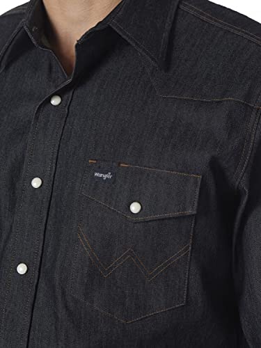 ICONIC FINISHES. This Western-style shirt is finished with signature Wrangler details – W stitching on pockets, a riser label on left pocket flap and double-needle top stitching at armholes and shoulders.