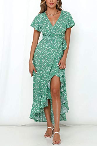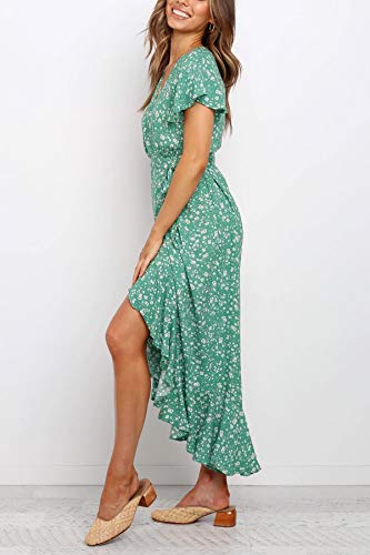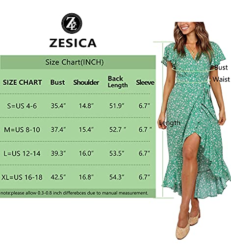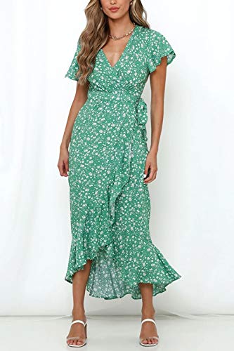 ZESICA Women’s Summer Bohemian Floral Printed Wrap V Neck Beach Party Flowy Ruffle Midi Dress