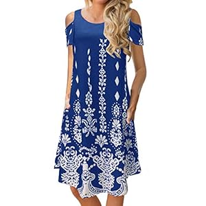 ★STYLE:Simple but trendy clod shoulder midi dress loose fit and flare,makes you look more fashion and elegant with it